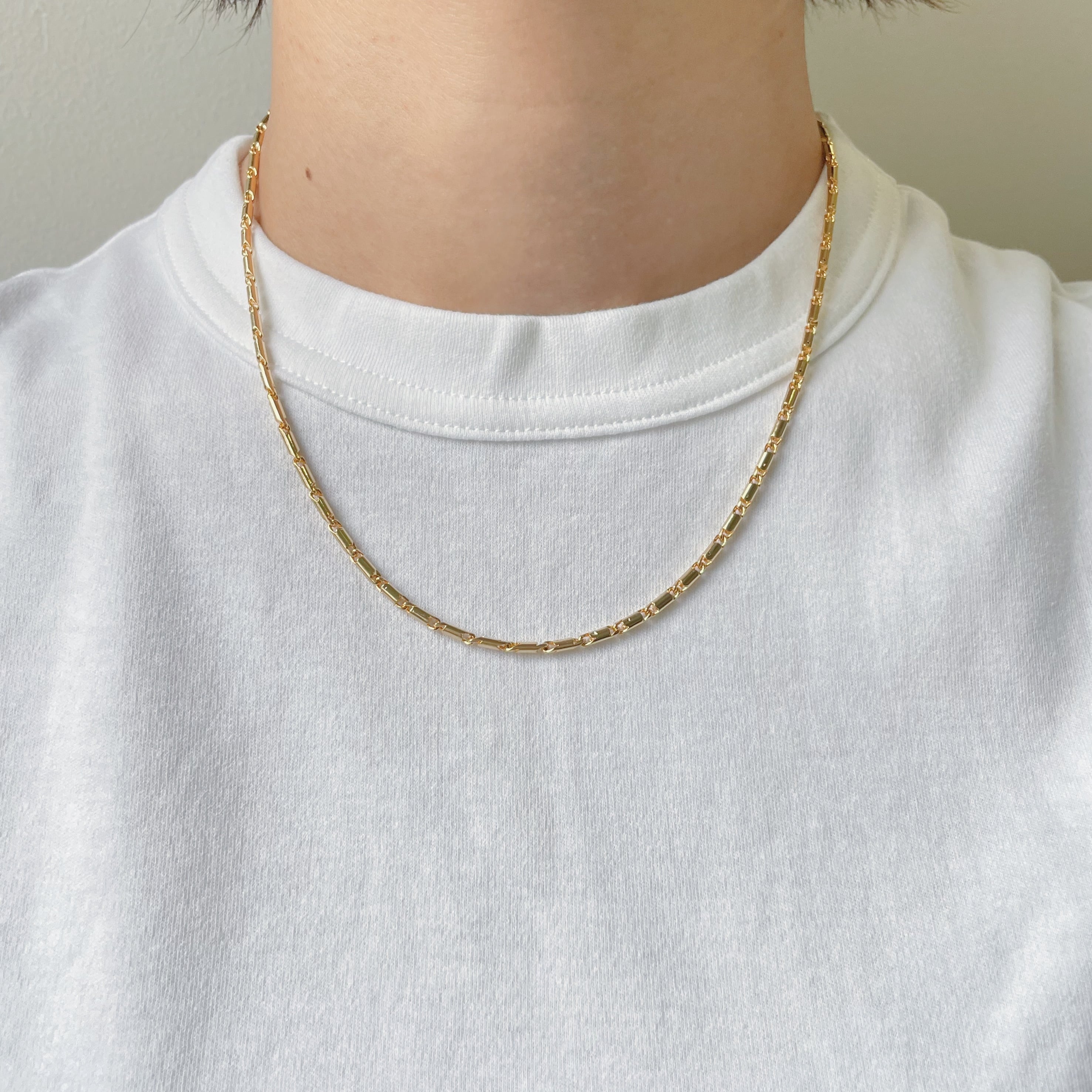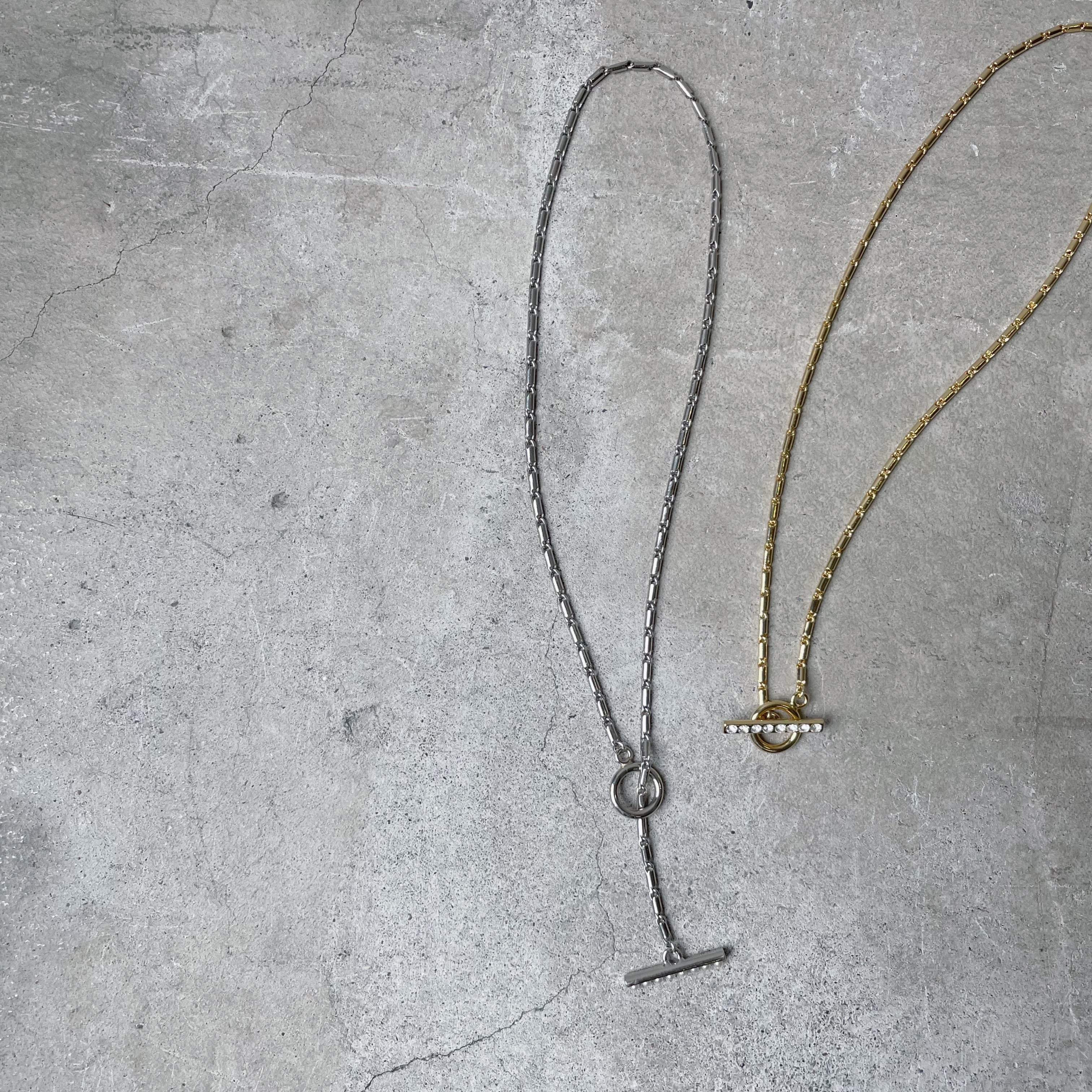 絶妙な長さのチェーンはマンテルをフロント部分にT字ネックレスとしてご使用いただくとアクセントとなり、
