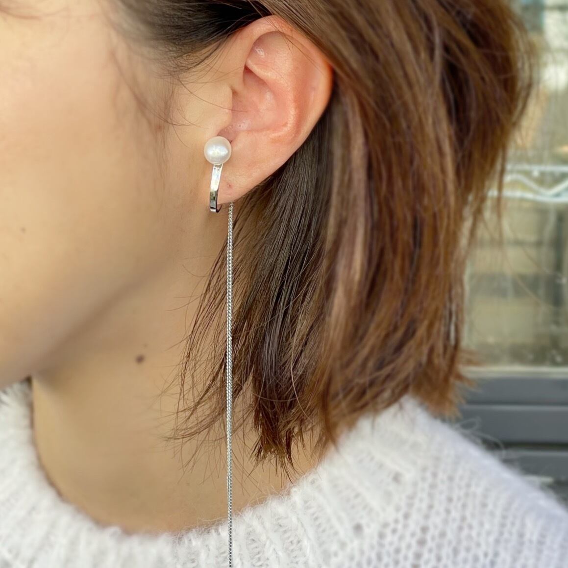 一粒パールにロングの繊細なチェーンをあしらったイヤーカフ。
