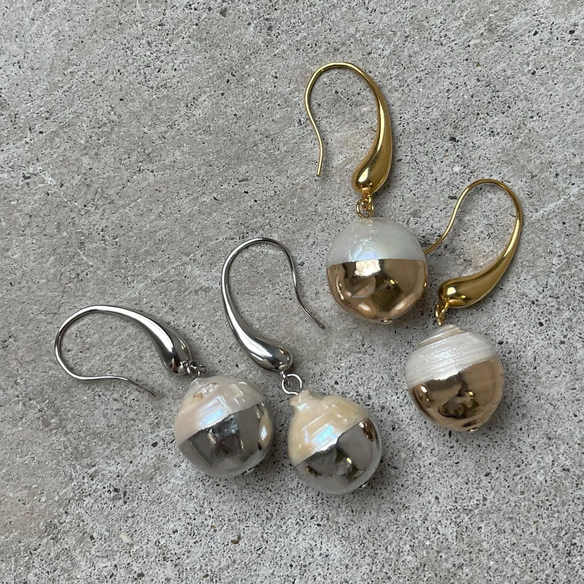 ころんとしたフォルムのパールにどんぐりのようにメタル加工を施しました