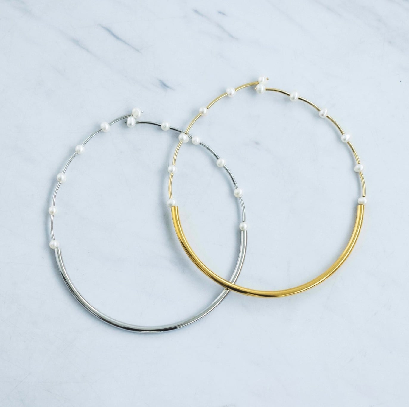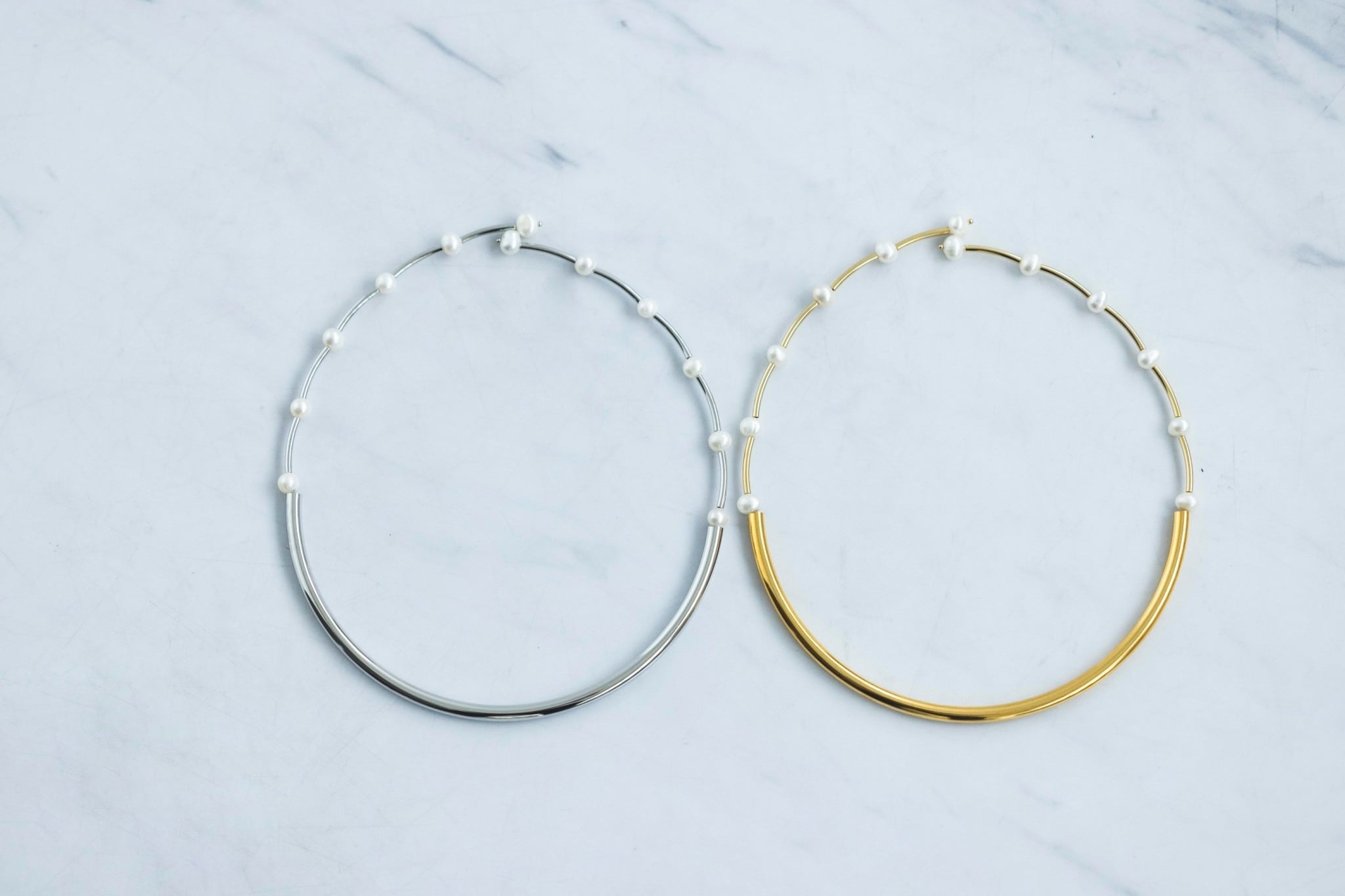 バロック淡水パールとメタルパーツを使ったチョーカーにNEWversion♡