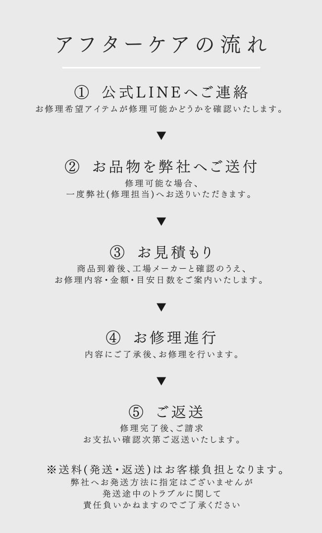 公式LINEにてお修理内容を確認後、発送方法および送付先住所を改めてご案内いたします。